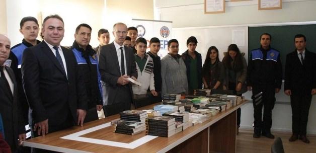 Toplum Destekli Polislik Şube Müdürü Cihan Aydoğan, proje kapsamında alınan 2 bin kitaptan 200'ünü okul kütüphanesine teslim etti.