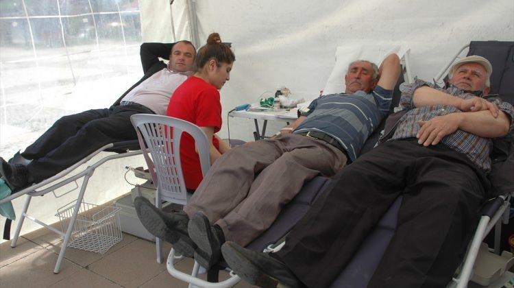 Belediye Meydanında düzenlenen kan bağışı kampanyasına vatandaşlar yoğun ilgi gösterdi.