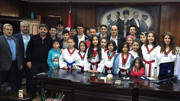 Gülüç Belediyespor Tekvando Takımı, Gülüç Belediye Başkanı Mustafa Gökhan Demirtaş'ı makamında ziyaret etti.